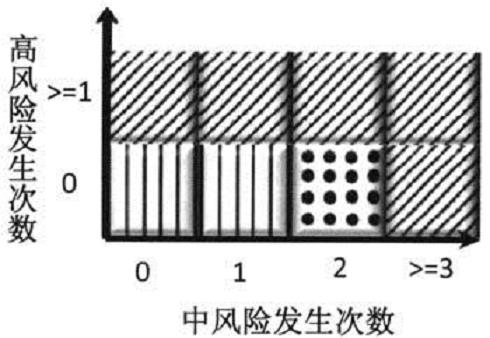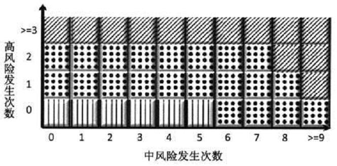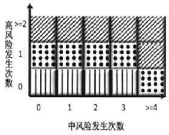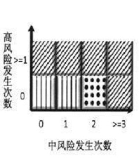 在风险定级之后,根据一定的风险容忍度,从高风险发生次数和中风险发生次数两个维度,按不同单位层级、业务类别,设定对中心支行和县市支行的风险预警等级,以便对中心支行和县市支行进行风险预警。