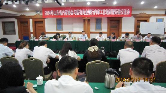 7月17日,山东省内审协会与中国银行山东省分行、中国农业银行山东省分行、中国工商银行山东省分行、中国建设银行山东总审计室在青岛联合召开了内审工作培训暨经验交流会。省内审协会会长王谦华、秘书长支爱斌及秘书处的人员,中国银行山东省分行总稽核隋春玲、稽核部全体人员,中国农业银行山东省分行、中国工商银行山东省分行、中国建设银行山东总审计室内审部门负责人共计45人参加了会议。