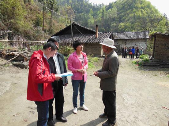 图为该局内审人员深入农户现场检查监督五保补助金发放