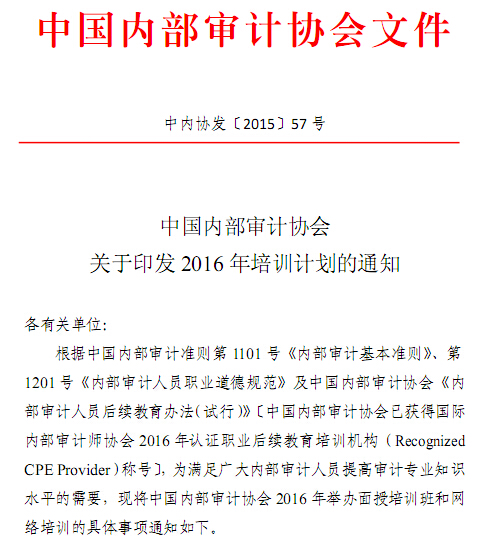 请点击下载:中国内部审计协会关于印发2016年培训计划的通知(完整版)