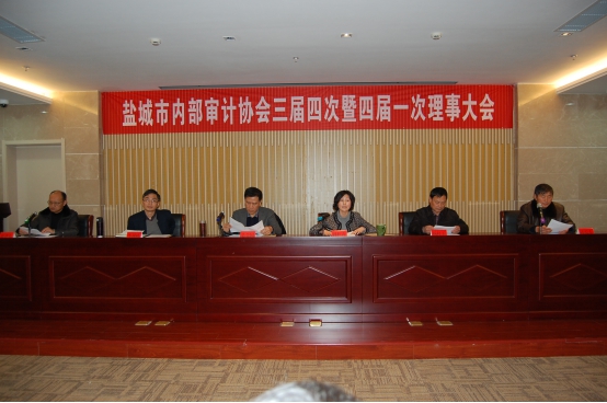 江苏省盐城市内部审计协会三届四次暨四届一次理事大会于12月17日在市审计局顺利召开。会议总结了过去两年盐城市内部审计工作情况,表彰了成绩显著的内审先进单位,选举了新一届理事会。本届理事会理事126名,是全市各条战线上审计、财务、管理方面的专家学者、领导,并在所在岗位上做出了一定成绩的代表人员。新一届理事会会长李树峰同志满怀信心和希望作了就职报告,并邀请市审计局党组书记、局长吴先国担任盐城市内部审计协会第四届理事会名誉会长。新一届理事会的产生必将对本市内部审计工作带来积极的推动作用。(盐城市内部审计协会)