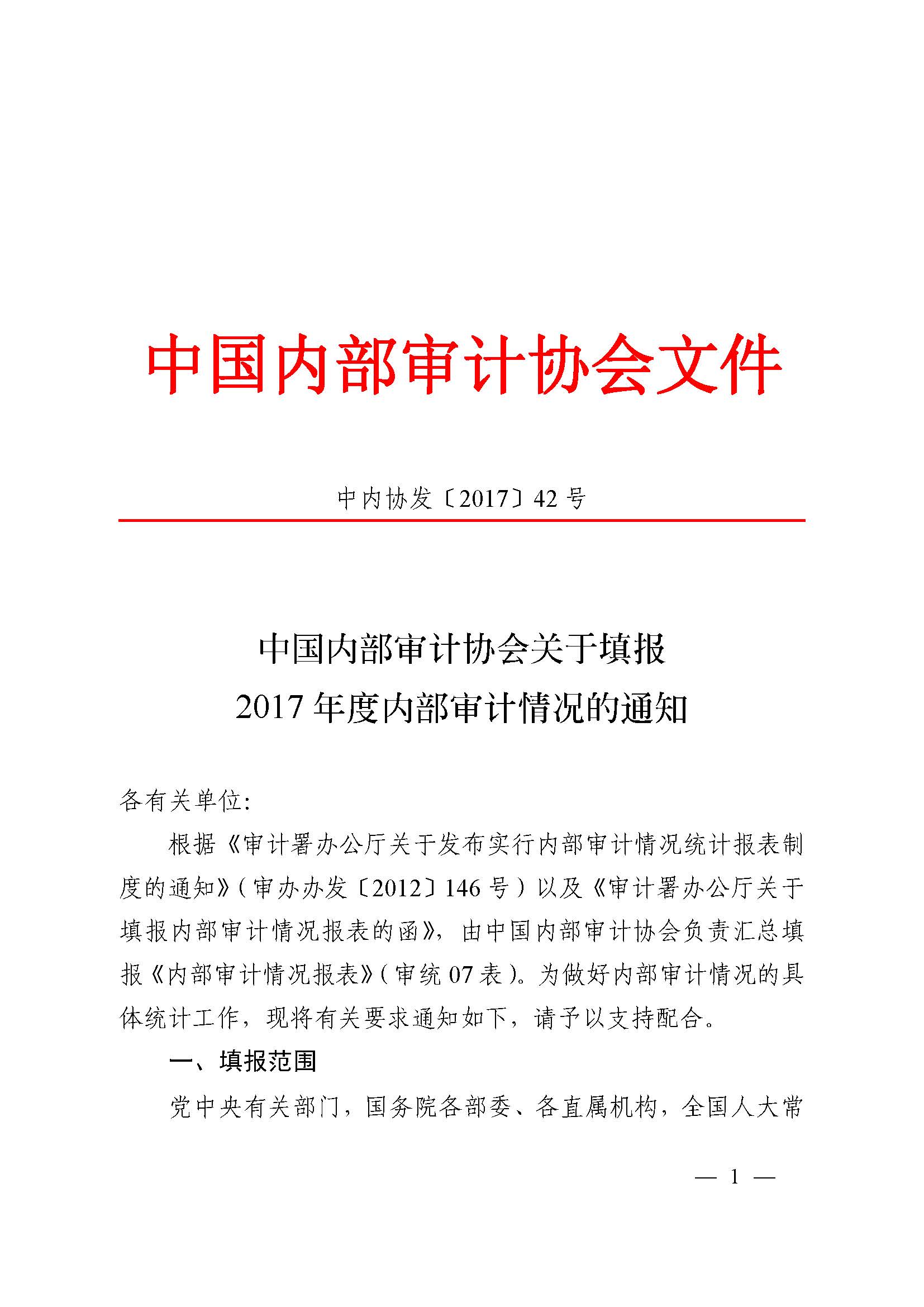 点击下载文件原文:中国内部审计协会关于填报2017年度内部审计情况的通知