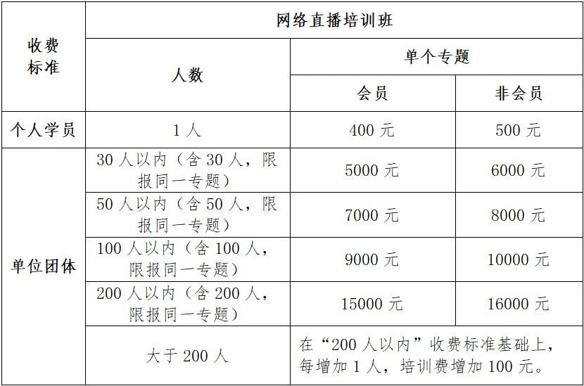 参加本次直播专题培训班的学员,如系中内协直属团体会员单位,或由各分会和省、自治区、直辖市、计划单列市内部审计(师)协会报备给中内协职业教育部的单位人员,或取得国际注册内部审计师(CIA)证书的人员,中内协将按“会员单位”标准收取培训费,其他人员或单位则按“非会员单位”标准收费。